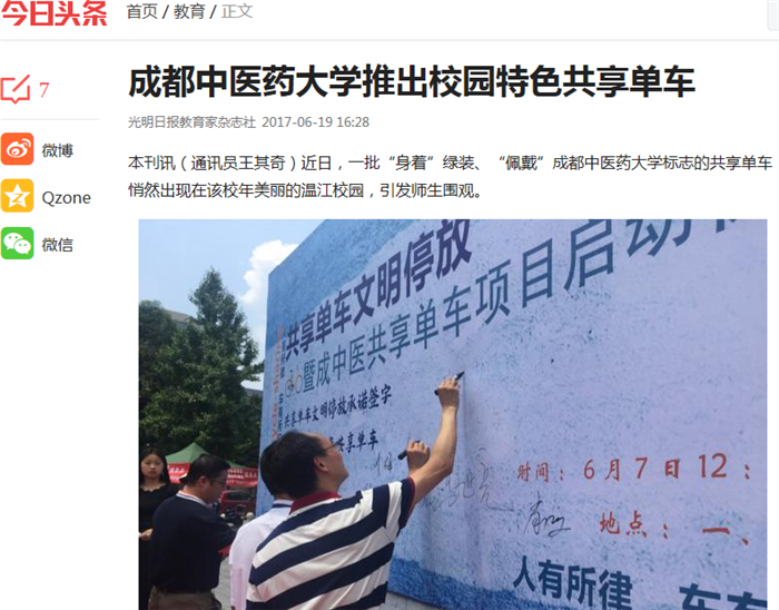 6月7日,伟德源自英国1946特色共享单车启用暨共享单车规范停放活动启动仪式举行,现场开展了规范停放共享单车宣传教育和承诺签名活动。广大师生纷纷在承诺墙上签名,并兴致勃勃地在校园体验了“小绿车”。