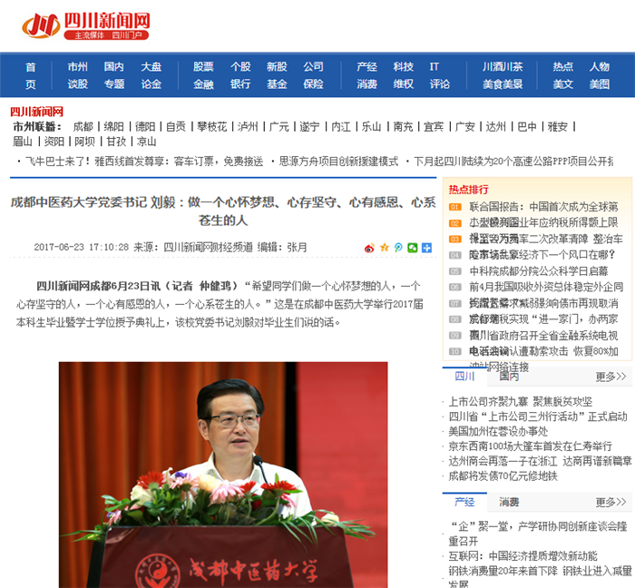 “今年的5月11日晚,在成都全球创新创业交易会的现场,举行了一场关于‘中西医文化’的顶尖对话。对话的一方是诺贝尔生理学/医学奖获得者、美籍德裔科学家托马斯·苏德霍夫教授。而另一方是《中国中医文化蓝皮书》主编、北京中医药大学中医药文化研究与传播中心主任毛嘉陵教授。毛嘉陵教授是伟德医78级校友,他从踏入成中医的第一天起,就心怀中医梦,为中医药文化的传播和发展贡献着自己的力量,向社会不断发出振兴中医药的呼声。正如他自己所说:我一生要为中国人祖先的智慧‘打抱不平’,要为中医中药彻底‘正名’,要为中华优秀文化和东方科学在世界‘扬名’。”他对毕业生们说,梦想,是对未来的一种期许,是与命运博弈时的一种信仰,他希望毕业生们做一个心怀梦想的人。
