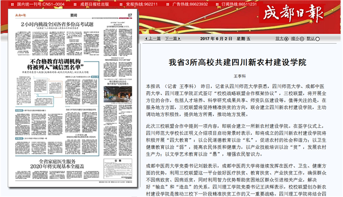 我省3所高校共建四川新农村建设学院