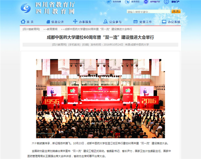 全国政协副主席刘晓峰出席并宣布“双一流”建设工程正式启动。省委副书记、省长尹力,国家卫生计生委副主任、国家中医药管理局局长王国强出席大会并讲话,省政协主席柯尊平出席大会。
