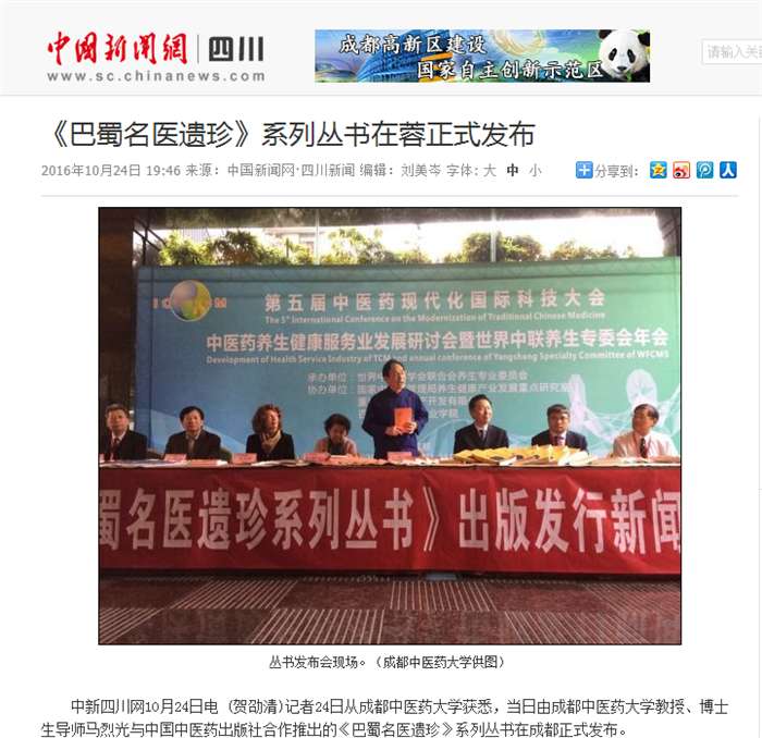 该丛书还成功申报为四川省社科课题,因而顺利完成了已故巴蜀现代名医存世资料的搜集、整理研究工作,保证了这套丛书的高品质和高水平。(完)
