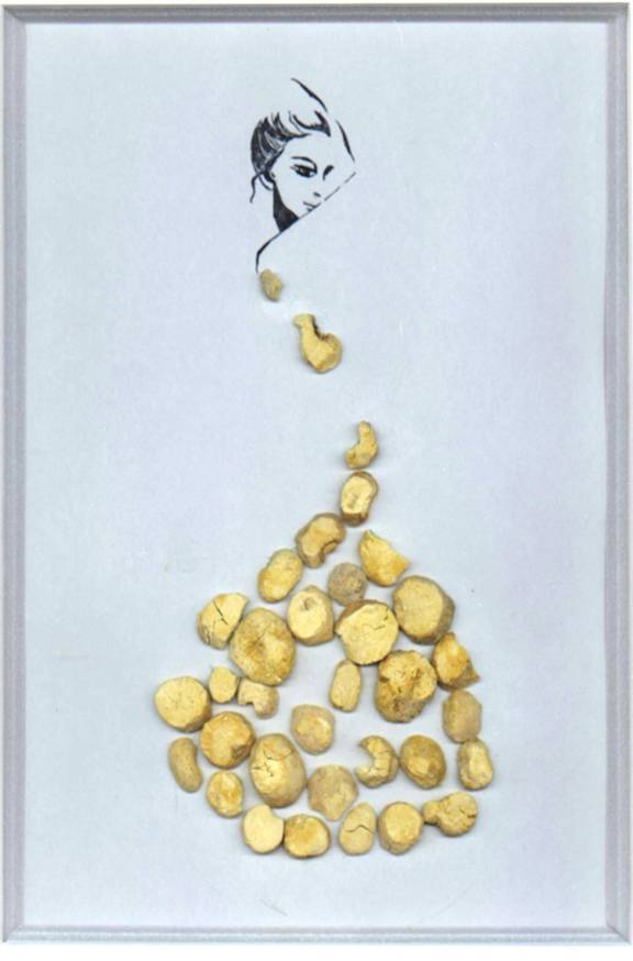 山药做成的裙子很容易让人想到亮片的元素,颜色blingbling的,时尚度很高哦!