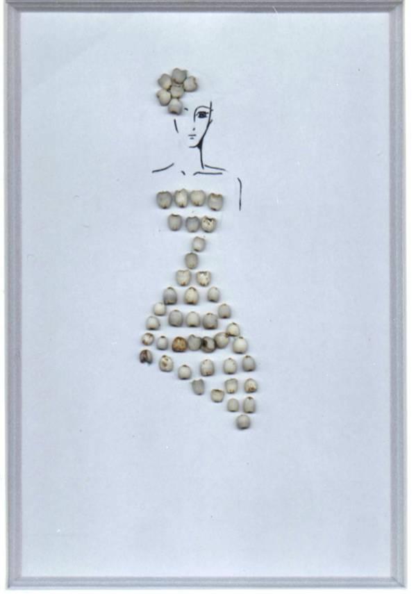薏苡仁不仅做成了一条不规则裙摆的露肩美裙,还顺带制作了一顶洋气的礼帽,我服!