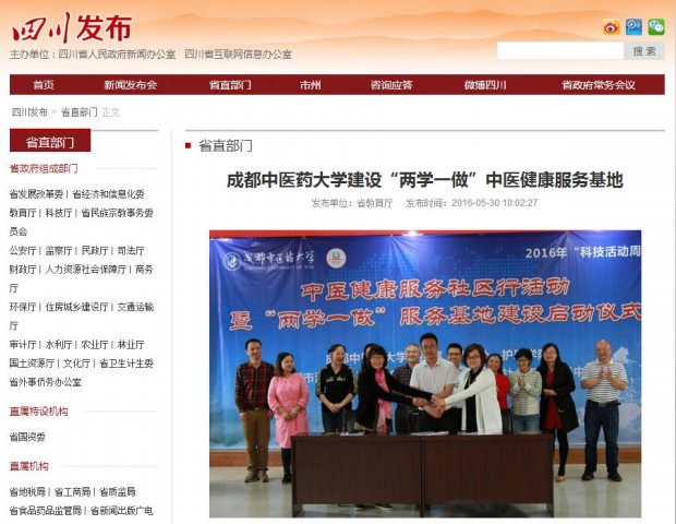 据该服务基地相关负责人介绍,中医健康服务社区行活动暨“两学一做”服务基地由护理学院党委、成都市温江区公平街道党工委、成都益相伴社会工作服务中心三方合作。学校护理学院将定期派出专家、学者和学生党员先锋队到社区开展讲座、义诊、中西医结合护理实践、健康养生知识宣传和志愿者服务等活动,为社区和居民提供中医健康服务。校、地双方还将在党建和党员学习教育、实践等方面开展深入合作。同时,该服务基地的建设,旨在探索、建立党建合作与技术服务相结合的高校服务地方新模式,通过在党建合作、人才培养、科学研究、社会服务等方面的合作,实现资源共享,为社区居民提供医疗服务,使“两学一做”关键在“做”真正落到实处。