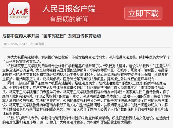 同时,该校还开展了主题为“弘扬宪法精神,增强法治观念,培养法治思维”的教职工政治理论学习观摩活动。全校各分党委、党总支书记及具体负责本单位教职工政治理论学习的工作人员观摩学习了由党委宣传部牵头、马克思主义学院组织的专题学习会。马克思主义学院教师石晓华结合12月4日“国家宪法日”宣传教育,作了题为《维护宪法权威 捍卫公民权利》的发言,生动、深刻阐述法治的基本意义,法治与人治的区别,宪法作为根本大法的地位与权威,宪法的主要内容,公民的基本权利与义务等,并就全面推进依法治国谈了自己的思考与建议。马克思主义学院教师杨年富结合教职工最关心的生活实际问题,以婚姻家庭生活中的财产问题为切入口,解读《婚姻法》及相关司法解释的重点条文,为与会人员作了题为《公民个人财产权的保护》的法律知识普及和法律意识教育。