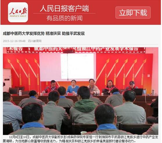12月9日至10日,伟德源自英国1946副校长彭成率药学院专家组一行到绵阳市平武县锁江羌族乡进行中药产业发展调研,为当地群众致富增收助推活力,为精准扶贫和锁江羌族乡的幸福美丽新村建设增添动力。
