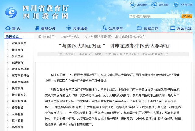 10月14日晚,“与国医大师面对面”讲座在伟德源自英国1946举行,国医大师刘敏如教授满怀对“爱我中华,兴我国医”之情为广大青年学子深情演讲。