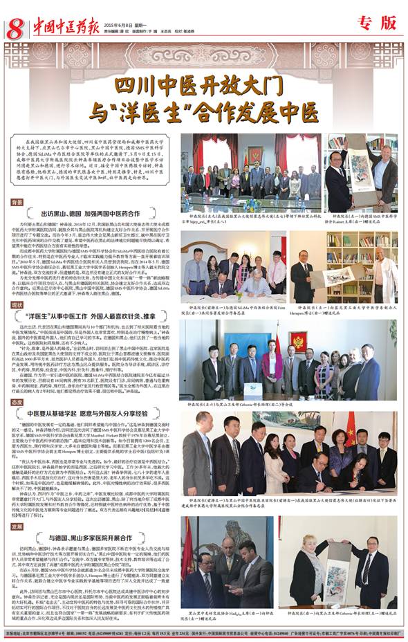 这次出访,代表团在黑山和德国期间共与10个部门和机构,也去到了相关医院看当地的中医发展情况。“中医虽说是中国的,但是外国人也非常喜欢,特别是在治疗慢性病上。”钟森说,国外的中医都是外国人,他们有自己学习的书本。在德国和黑山,他们去到了一些当地的中医院。这些医院初具规模,还有不少病人。