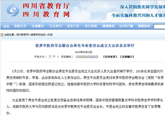 世界中医药学会联合会养生专业委员会成立大会在北京举行