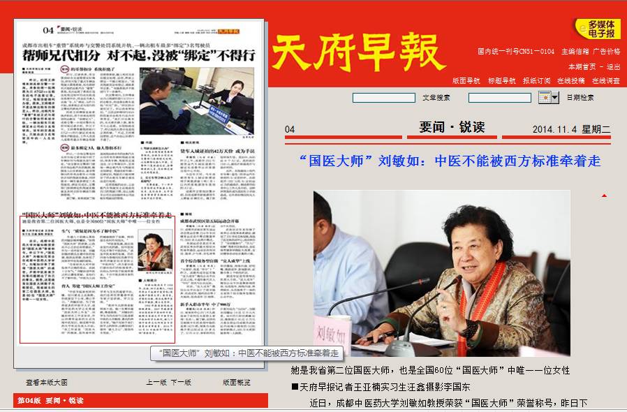 年逾八十却满头黑发的刘敏如精神矍铄。“获得‘国医大师’的荣誉,让我在开心之余还非常感动。”作为一名中医专家,刘敏如随时都关注着中医的发展,能获此荣誉,也体现了国家对中医发展的重视。