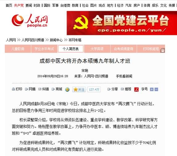 成都中医大将开办本硕博九年制人才班