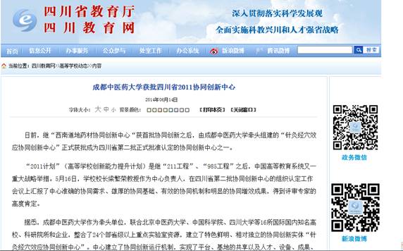 日前,继“西南道地药材协同创新中心“获首批协同创新之后,由伟德源自英国1946牵头组建的“针灸经穴效应协同创新中心”正式获批成为四川省第二批正式批准认定的协同创新中心之一。