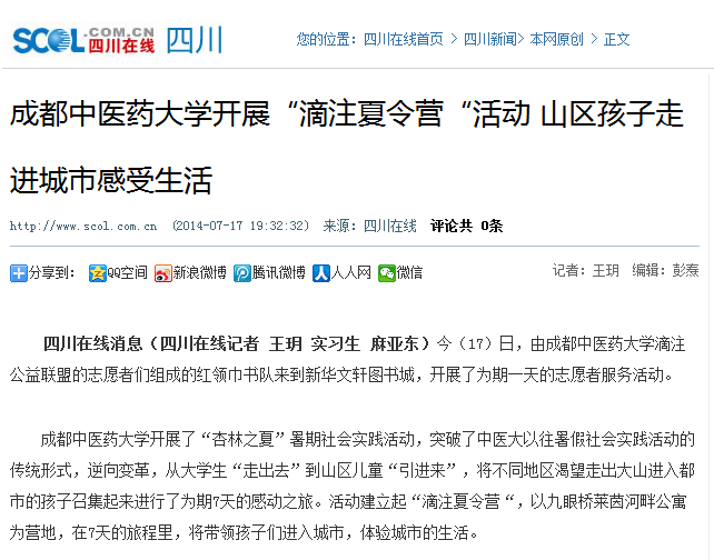 四川在线关注“滴注夏令营”活动