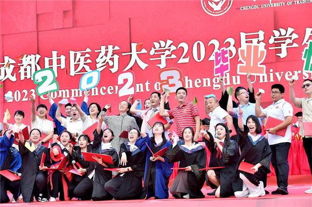 典礼上,学校寄语全体毕业生,希望同学们怀“四心”驰志,积极投身到新时代新天地中,在新舞台上建功立业,让青春在创新创造中闪光,以实际行动绘就成中医青年的时代担当!