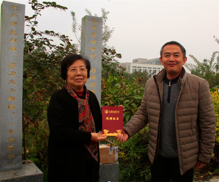 捐赠仪式上,冯全生代表学院对万德光先生向学校无偿捐赠名贵稀有中药资源龙脑樟表示衷心感谢,为其颁发了捐赠荣誉证书。他表示,万先生一生从事中医药事业,学术成就高超,为中医药事业的发展做出巨大贡献。退休后的万先生一如既往地热爱学校、关心学院,是大家学习的楷模。