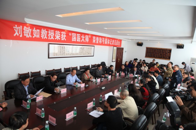 马跃荣代表学校党委和行政向刘敏如教授表示热烈祝贺,向关心和支持学校发展的各级领导和新闻界的朋友们表示衷心感谢。他介绍了学校在学科建设、人才培养等方面做出的重要贡献和刘敏如教授五十多年来在医疗、教学、科研及管理工作中所取得的优秀成绩。他指出,学校将充分发挥两位国医大师的引领作用,搭建好为国医大师发挥引领作用的各种工作、学习和生活平台,以国医大师学术经验的传承为起点,加大各类人才的扶持和培养。他强调,学校将以刘敏如教授荣获“国医大师”荣誉称号为契机,进一步创新思路、增添干劲,努力提高中医药服务能力,支持健康产业的发展,大力弘扬以中医药为特色的中华文化,提升学校创新驱动能力与水平,更好地为地方社会经济建设服好务。