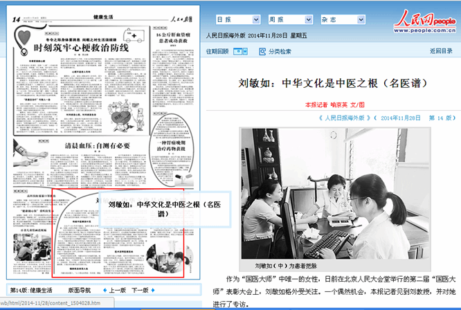 伟德刘敏如教授作为唯一一名女性国医大师备受社会各界关注,人民日报记者专程赴蓉采访。11月28日,人民日报海外版14版登出对国医大师、伟德刘敏如教授专访报道。以下是报道情况: