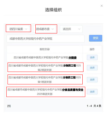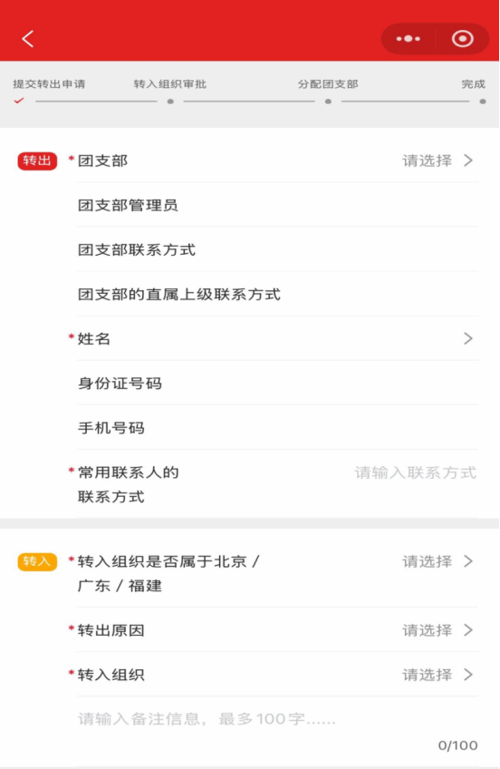 ·申请转入组织:请依次选择“团四川省委-团成都市委-(空着)”