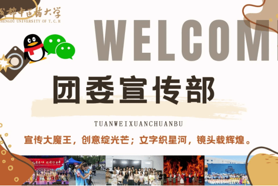 团委宣传部,我们以多元化的媒介为平台,精准高效地传递学院声音,展现学院风采。从日常QQ小药的即时发布,到深度微信推文的匠心独运;从宣传海报、易拉宝的制作,到新闻稿的撰写,我们始终为学院的宣传工作努力着,除此之外,我们还会举办一些创意活动,如:文创产品设计大赛,“悠悠本草味 艺满展春华”微视频大赛等活动。在这里,每一份努力都闪耀着创新的火花,每一次合作都凝聚着团队的智慧。