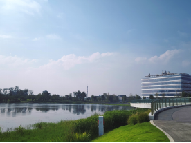 园区临湖而建,汇通湖水如翡翠铺展,风拂涟漪将云影、树影揉成“碎银”;现代楼宇配玻璃幕墙,映着湖光蓝天,流线型设计满是灵动感。漫步玻璃护栏步道,能听风拂草木、水鸟扑棱,随手即拍“校园大片”,让自然与建筑的美时刻围绕你。