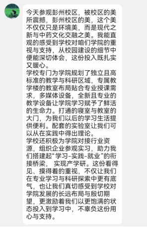 现代中药产业学院2025级新生入学仪式在轻松而愉悦的氛围中圆满落幕。此次彭州之行不仅是一堂生动的“开学第一课”,更是一次深刻的思想洗礼和初心教育,极大地增强了新生对学院的归属感与认同感,为其明确未来方向、合理规划大学生活奠定了坚实的基础。愿全体2025级新同学在现代中药产业学院的沃土上,乘风破浪,扬帆远航,书写无愧于自己、无愧于时代的青春华章!