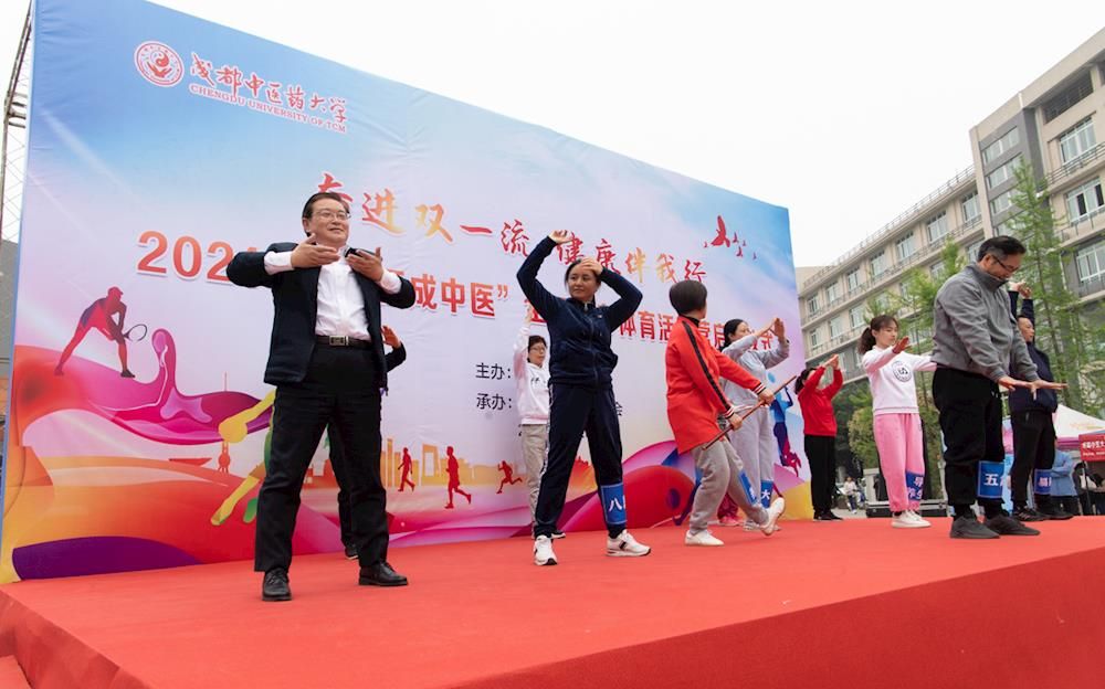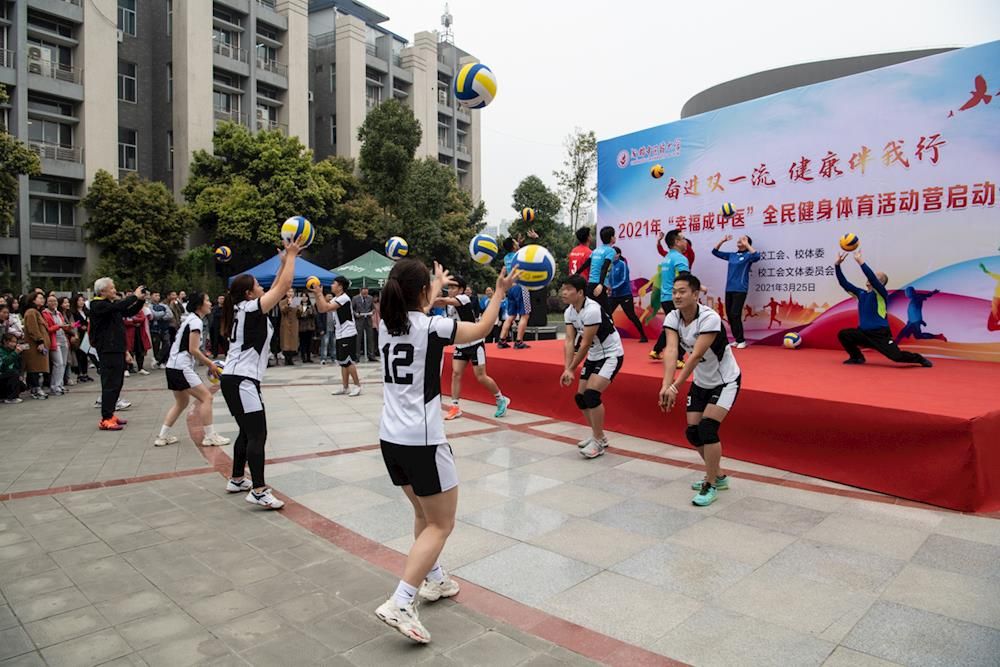 校工会副主席宋岚宣读《全民健身活动倡议书》,提出:推动“主动健康”民生实事,充分体现了学校党政对全民健身活动的高度重视和对师生身体健康的深切关爱。此次校工会、校体委联合开展“奋进双一流,健康伴我行”系列活动,推动“幸福成中医”全民健身体育活动营正式开启,向全校教职工发出崇尚生活方式新理念,形成运动锻炼好习惯,遵循“因人因地因时”三因制宜好方法,科学进行运动锻炼的倡议。