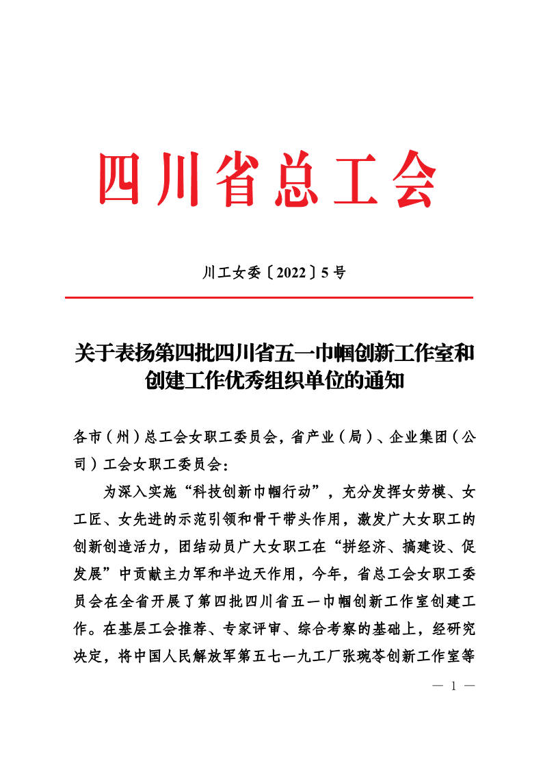 巾帼展风姿,创新看我行——伟德赵凌创新工作室荣获四川省“五一巾帼创新工作室”称号
