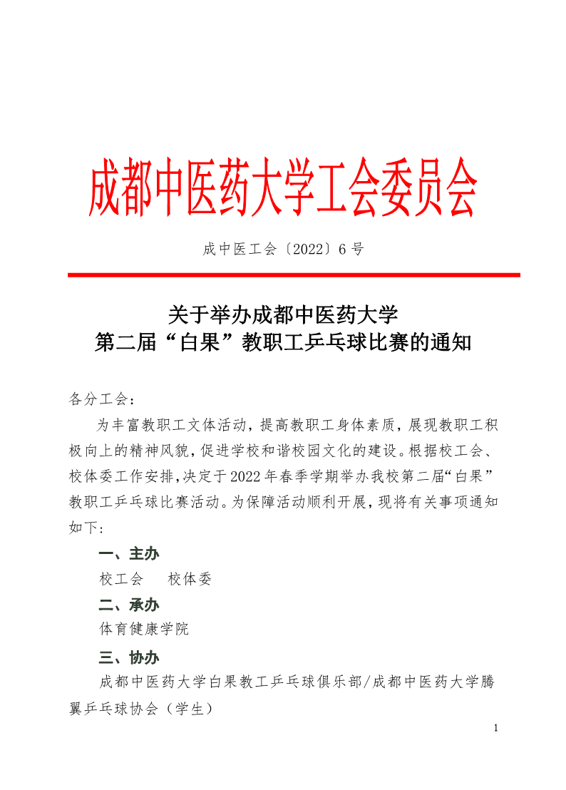 2022年第二届白果教职工乒乓球比赛的通知