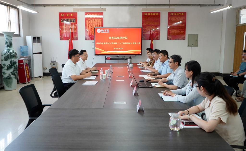 2025-07-057月4日上午,校党委副书记、校长丛海林到信息科学与工程学院(人工智能学院)调研指导,学校办公室相关同志陪同调研。会上,学院党委书记姬广华从党建引领、考研就业、学生管理等方面汇报了学院整体情况,并重点汇报了学院“1266”党建品牌和全国党建样板支部建设成就。院长杨振从发展历程、办学定位、师资队伍、人才培养、科学研究、社会服务等方面汇报了学院建设发展情况,并重点汇报了“智能科学与技术”学术硕士点申报进度...