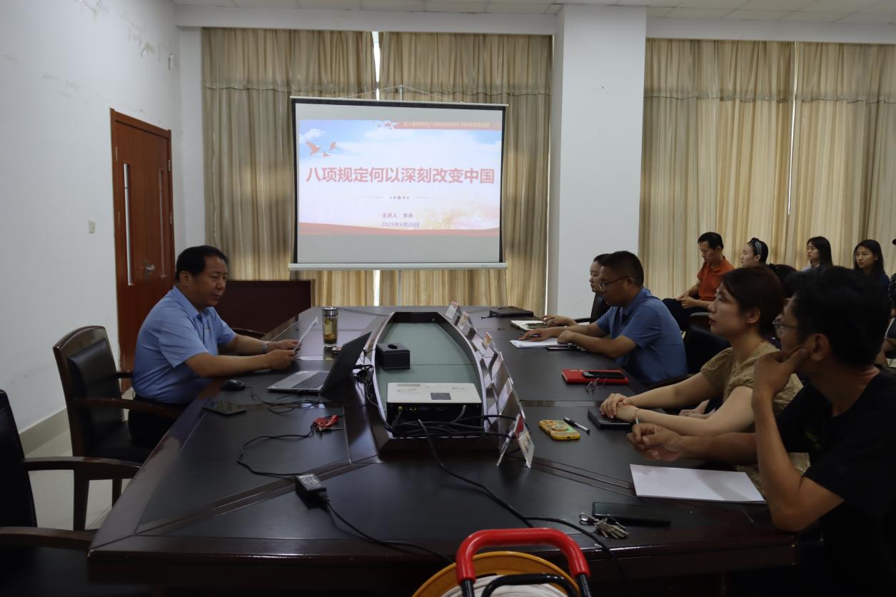 2025-05-195月14日下午,文学院在博雅楼B214会议室组织开展深入贯彻中央八项规定精神学习教育。学院党委书记宋明峰主持,学院党委理论学习中心组成员、各党支部书记参加学习。会议重点围绕《党的十八大以来深入贯彻中央八项规定精神的成效和经验》《八项规定改变中国》等重要文献开展专题学习研讨。与会人员通过系统学习,深刻认识到党的十八大以来,以习近平同志为核心的党中央以中央八项规定为突破口,推动全面从严治党取得历史性、开创...